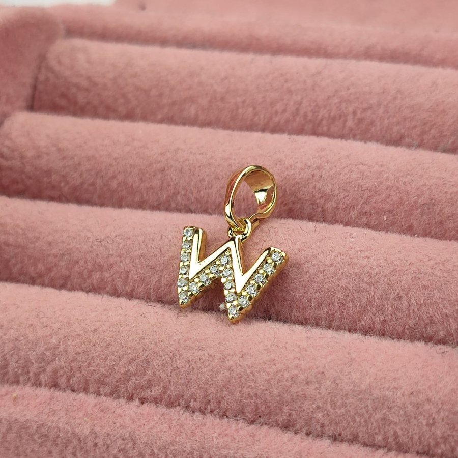 Zawieszka literka W mała cyrkonie luxury 14 k