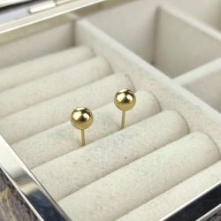 Kolczyki typu sztyfty/wkręty w całości wykonane z najwyższej jakości stali chirurgicznej 316L. Idealne na co dzień, delikatne złote kuleczki. Średnica kulki 5mm.