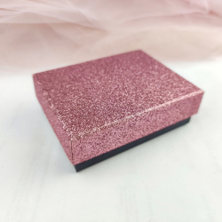 Pudełko na biżuterię 9cm x 7 cm brokatowe różowe