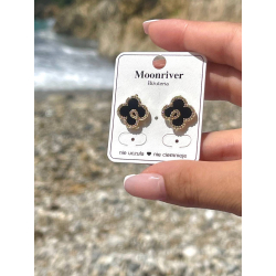 Kolczyki sztyfty lilutek koniczynka czarne cyrkonie luxury stal chirurgiczna