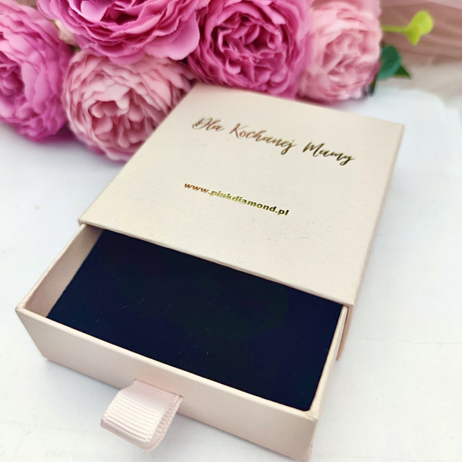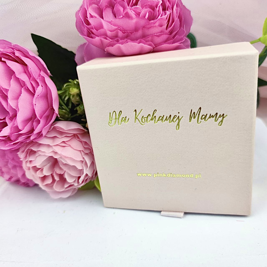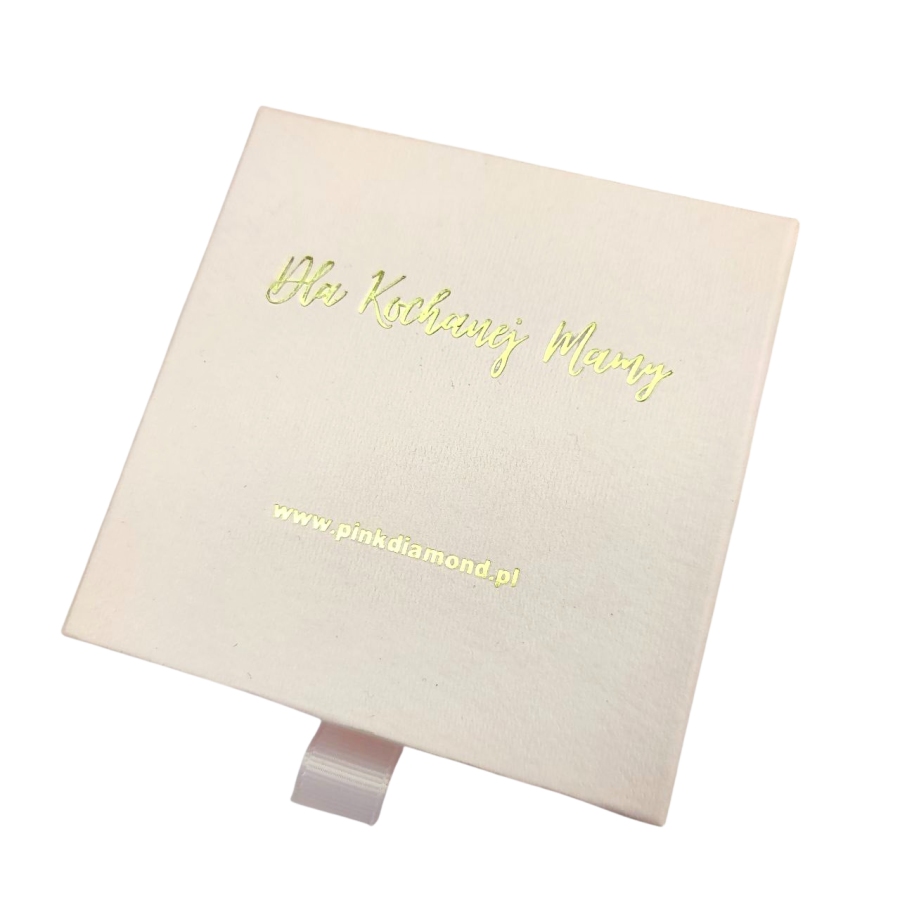 Pudełko prezentowe na biżuterię. Ze żlotym napisem "Dla Kochanej Mamy". Wielkość 8,5 cm x 8,5 cm.