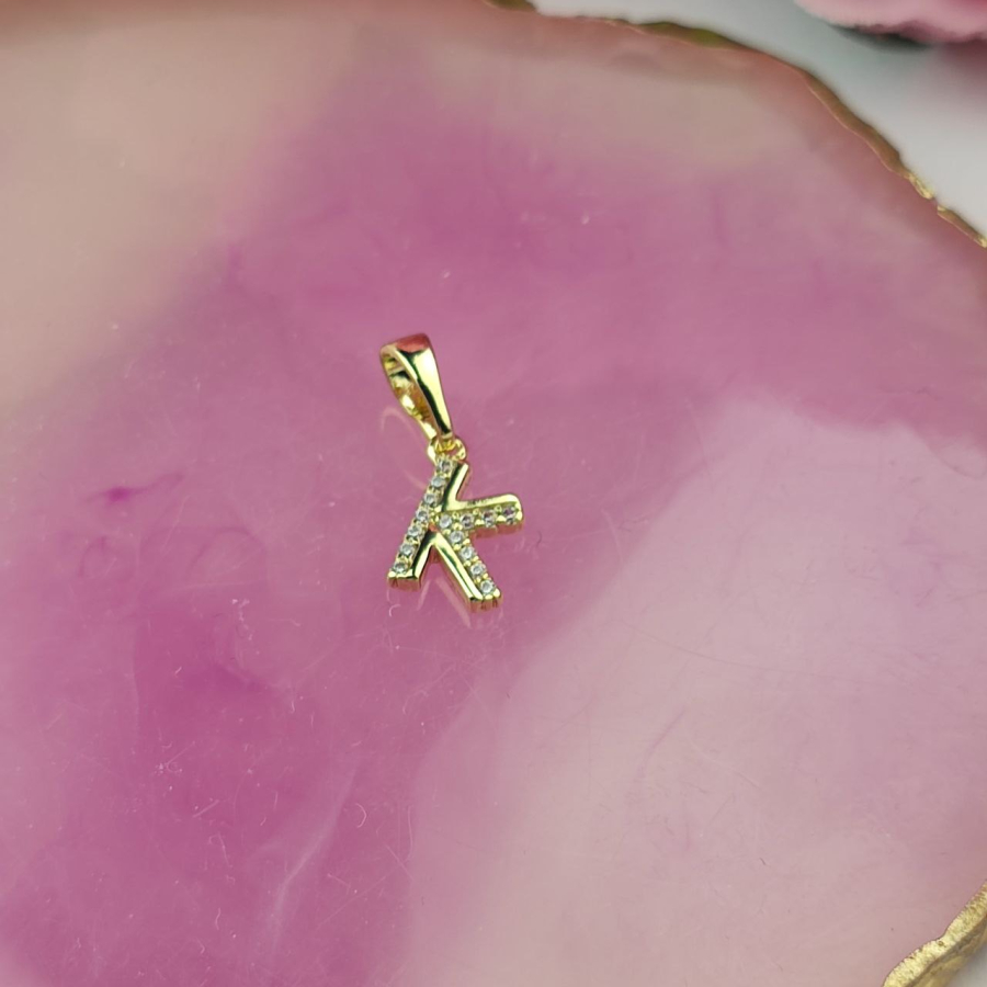 Zawieszka literka K mała cyrkonie luxury 14 k