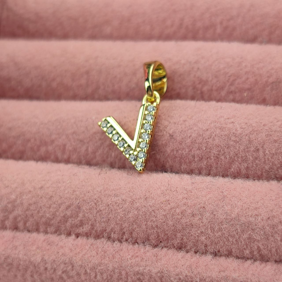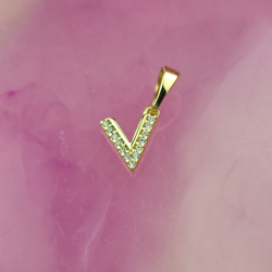 Zawieszka literka V mała cyrkonie luxury 14 k