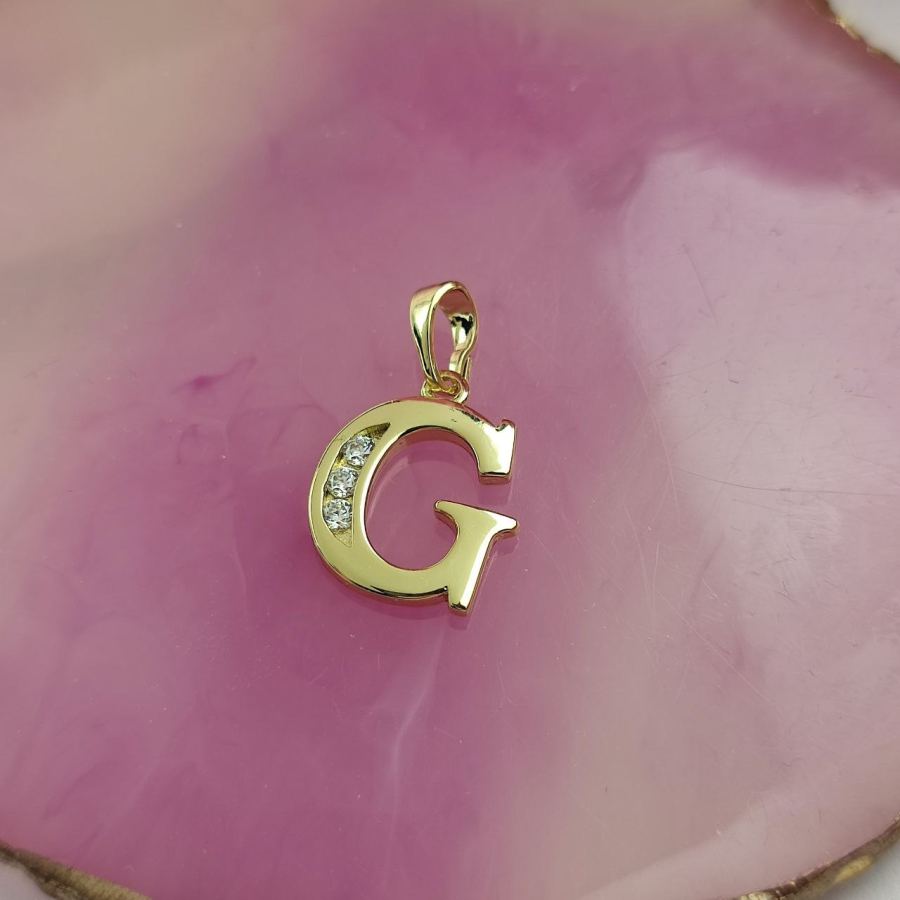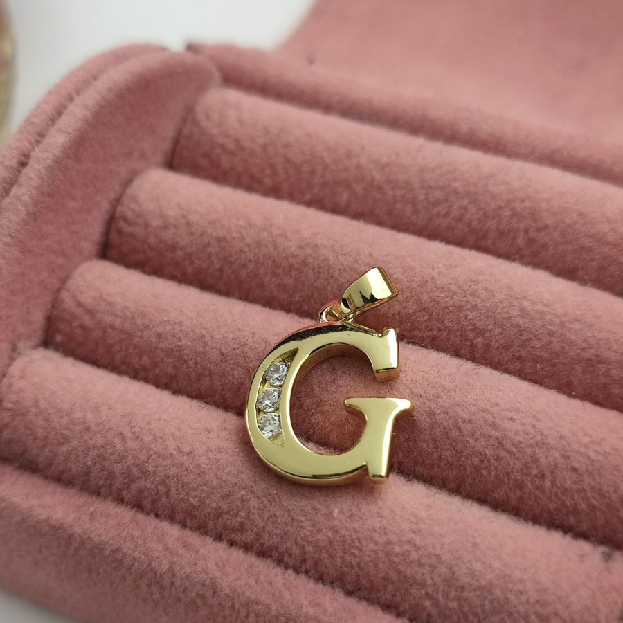 Zawieszka literka G duża cyrkonie luxury 14 k