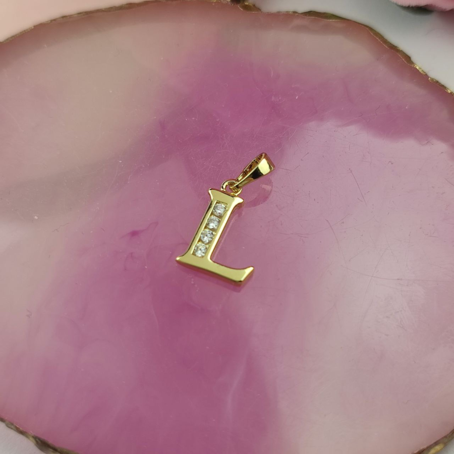 Zawieszka literka L duża cyrkonie luxury 14 k