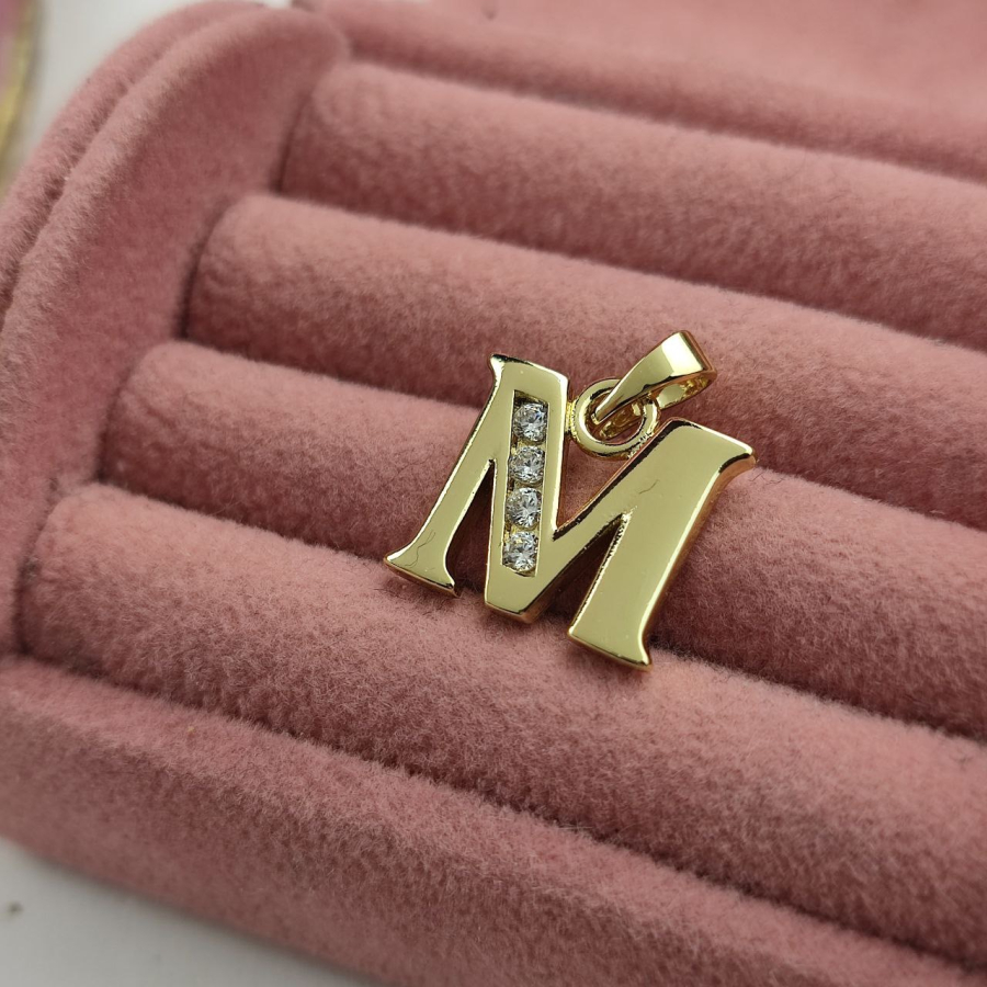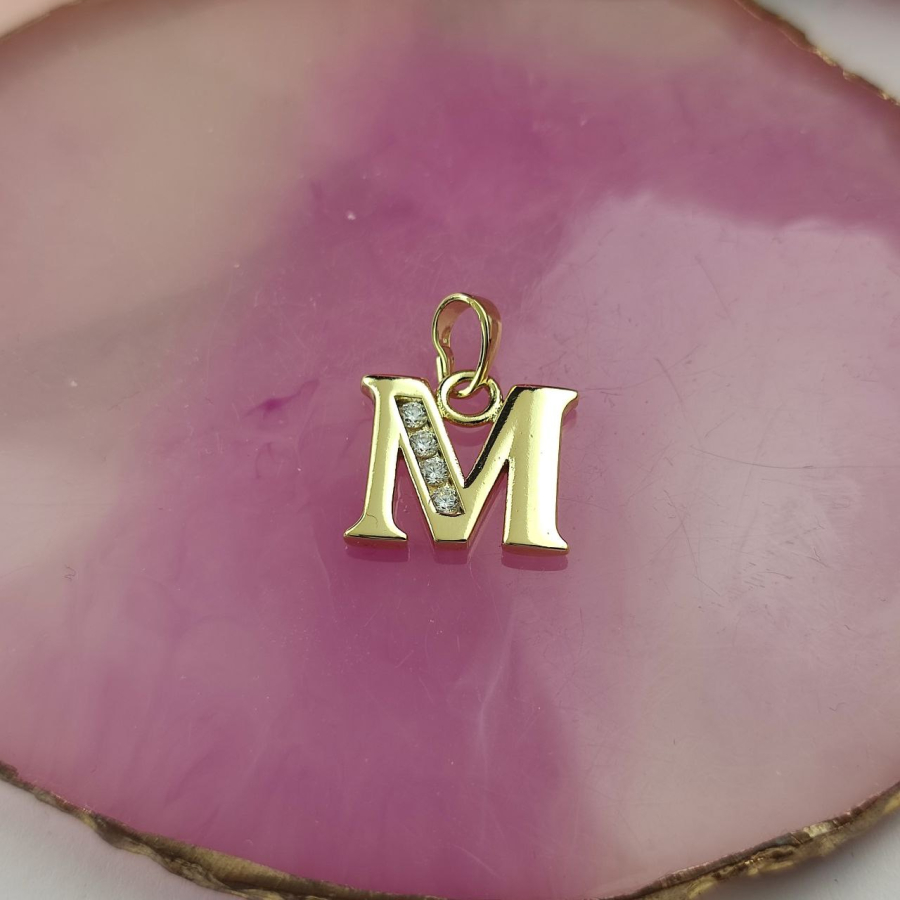 Zawieszka literka M duża cyrkonie luxury 14 k