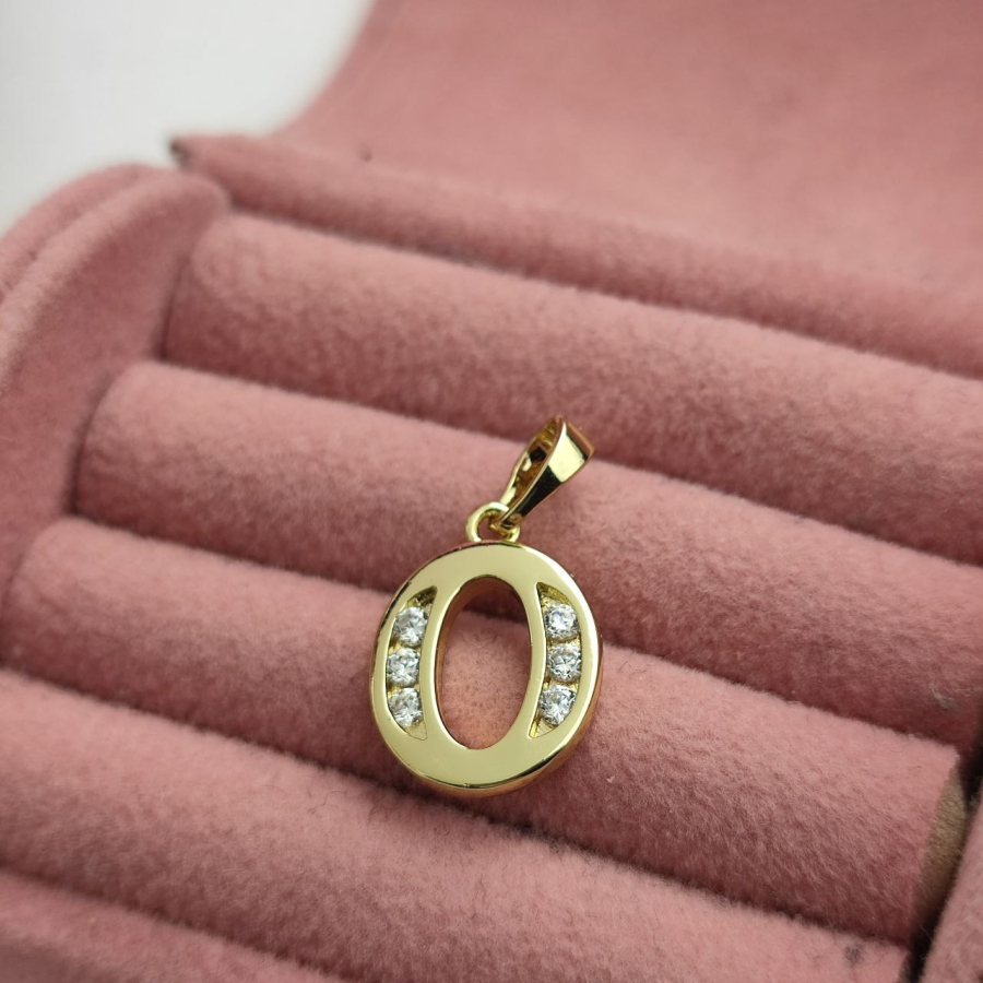 Zawieszka literka O duża cyrkonie luxury 14 k
