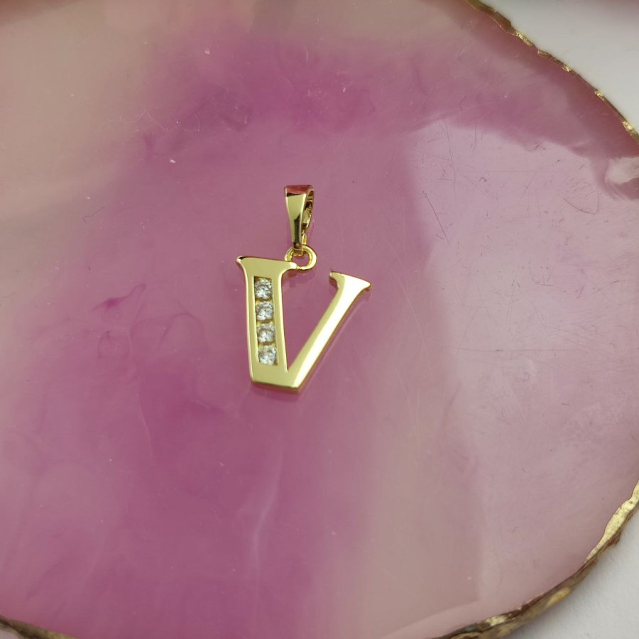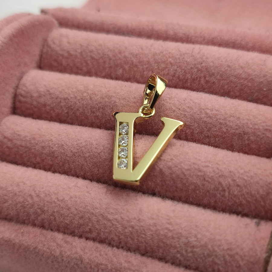 Zawieszka literka V duża cyrkonie luxury 14 k