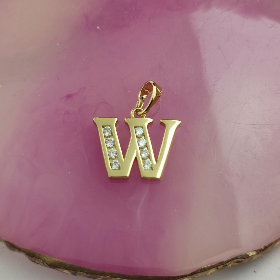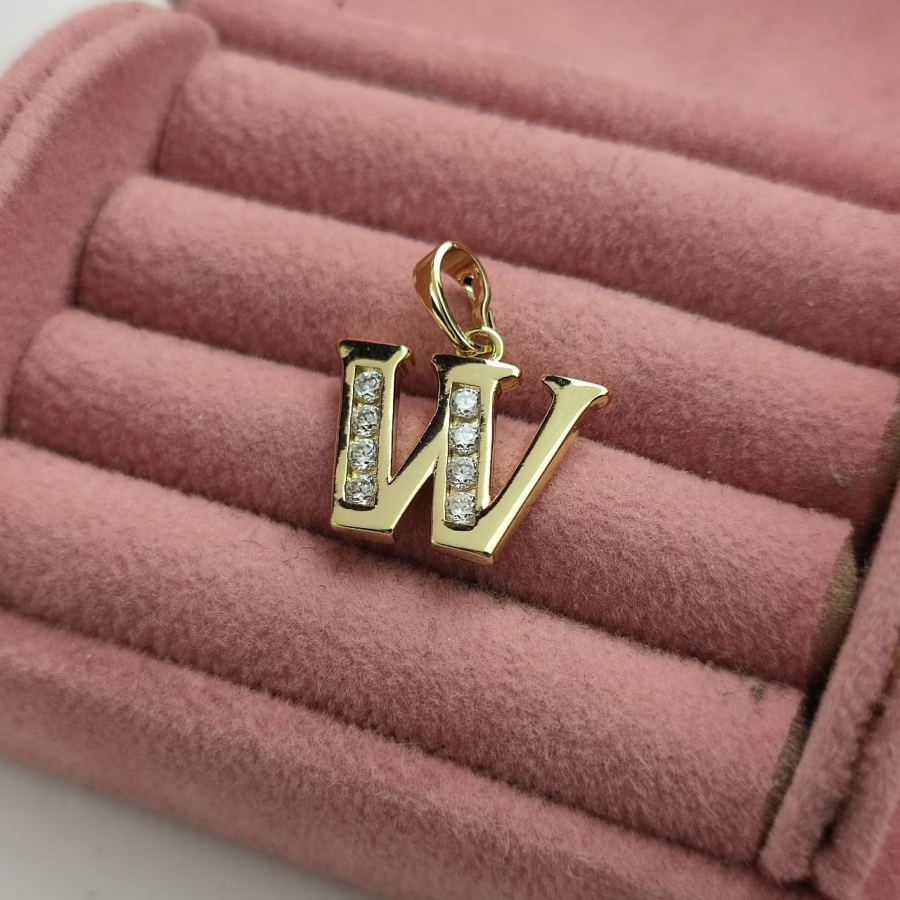 Zawieszka literka W duża cyrkonie luxury 14 k