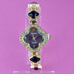 Zegarek Ariana ozdobny czarne kryształki koniczyna