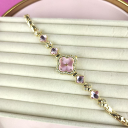 ✔ Złota bransoleta z ozdobnymi różowymi detalami