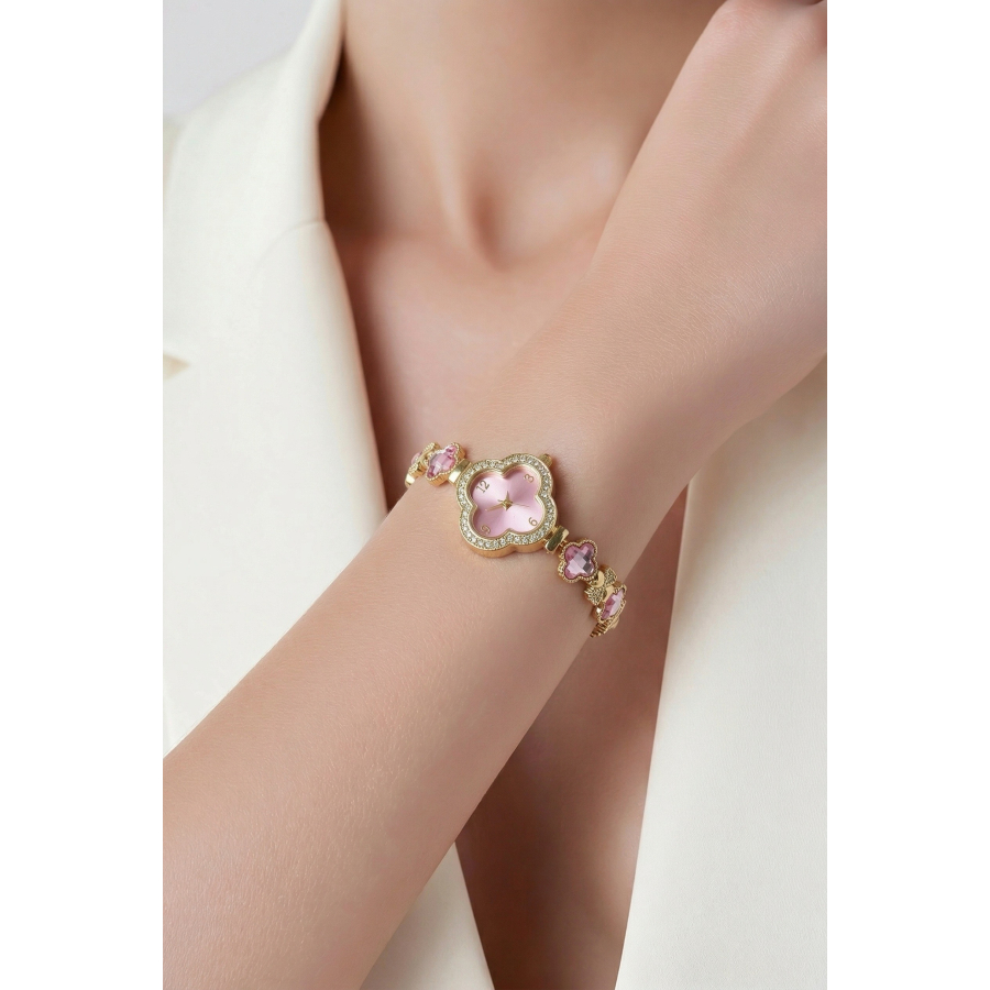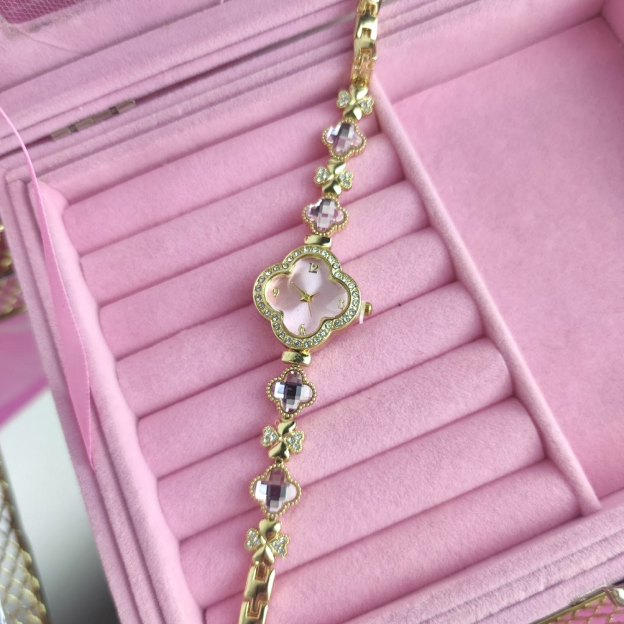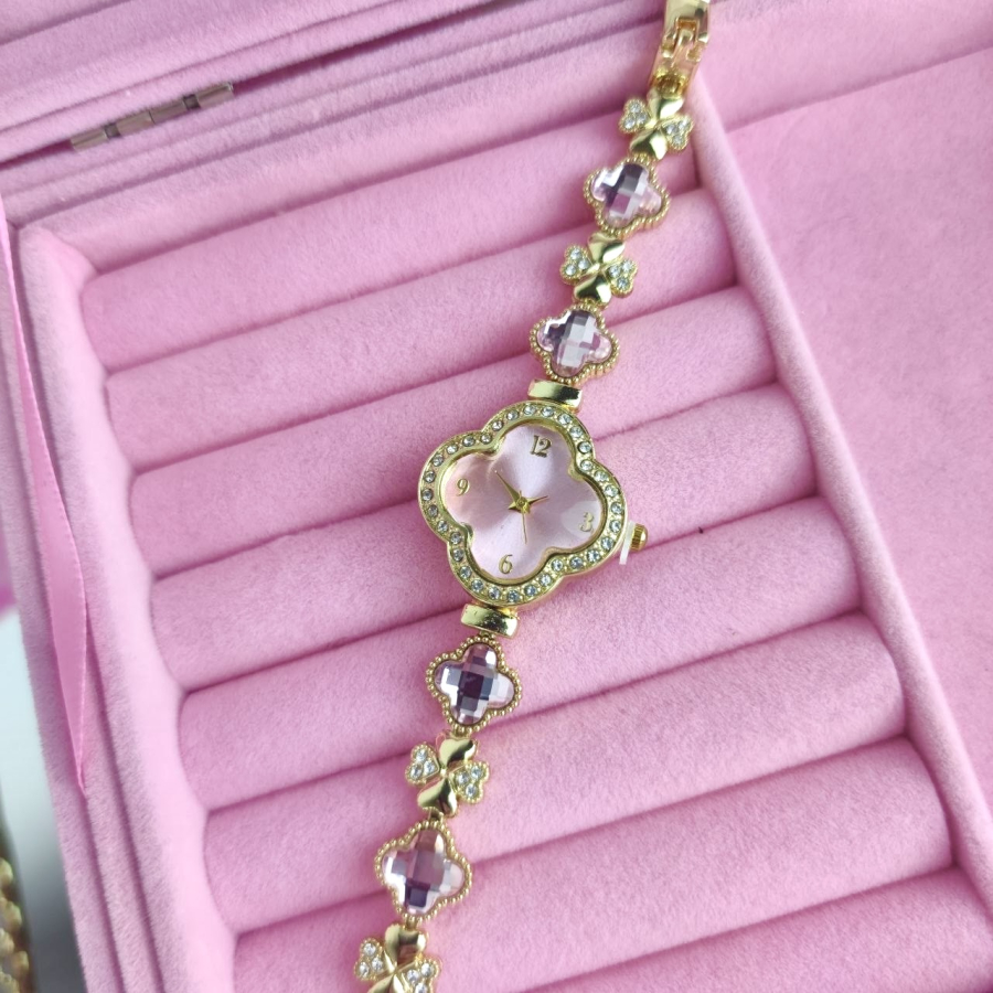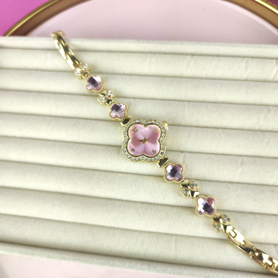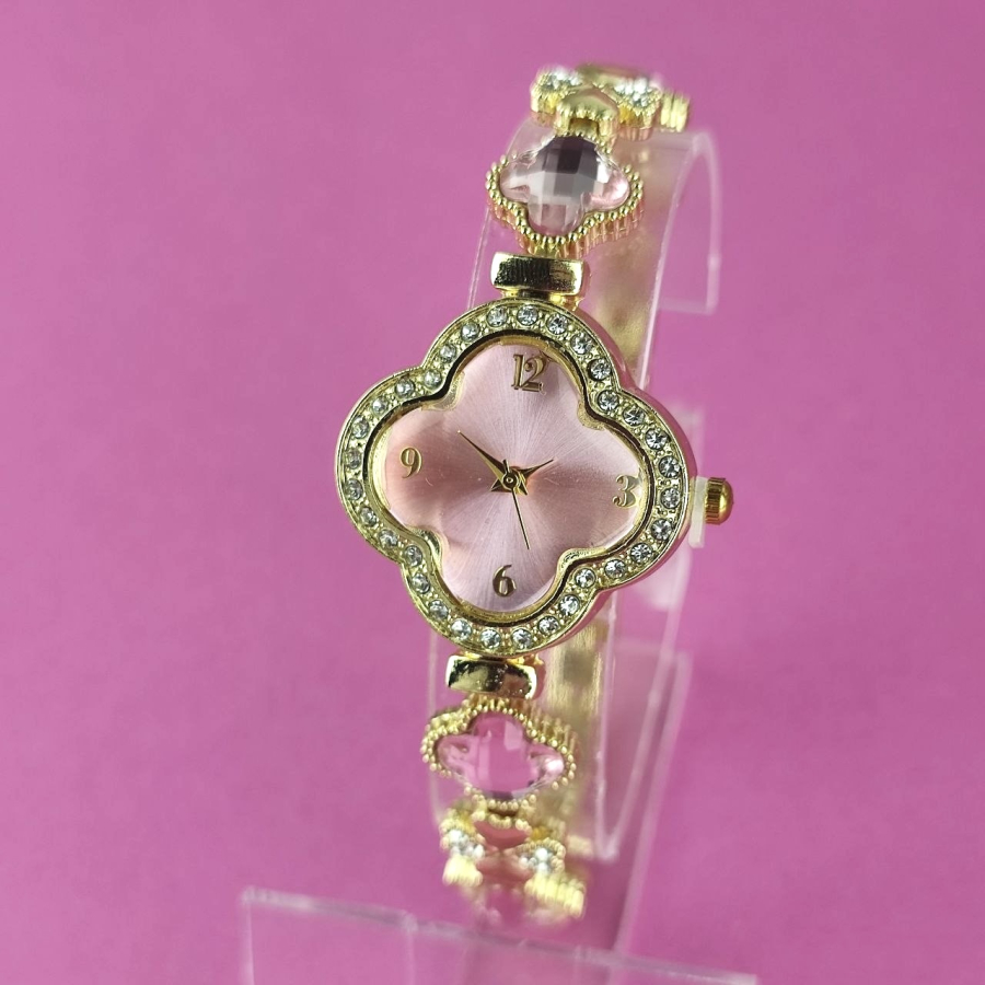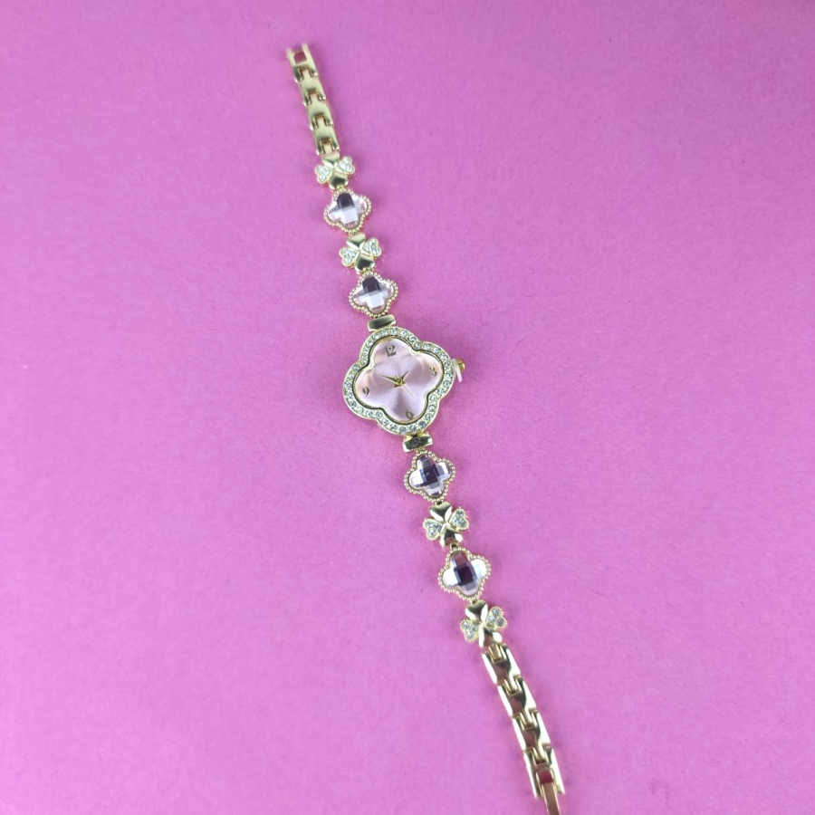 Zegarek Ariana ozdobny różowe kryształki koniczyna