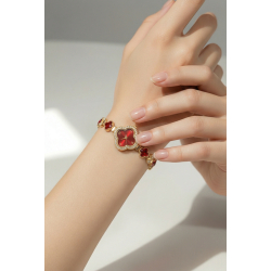 ✔ Złota bransoleta z ozdobnymi czerwonymi detalami
