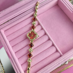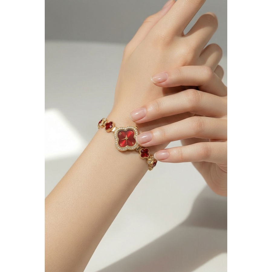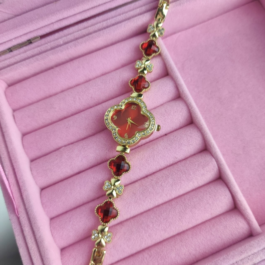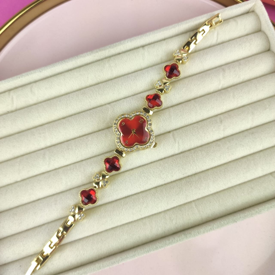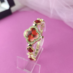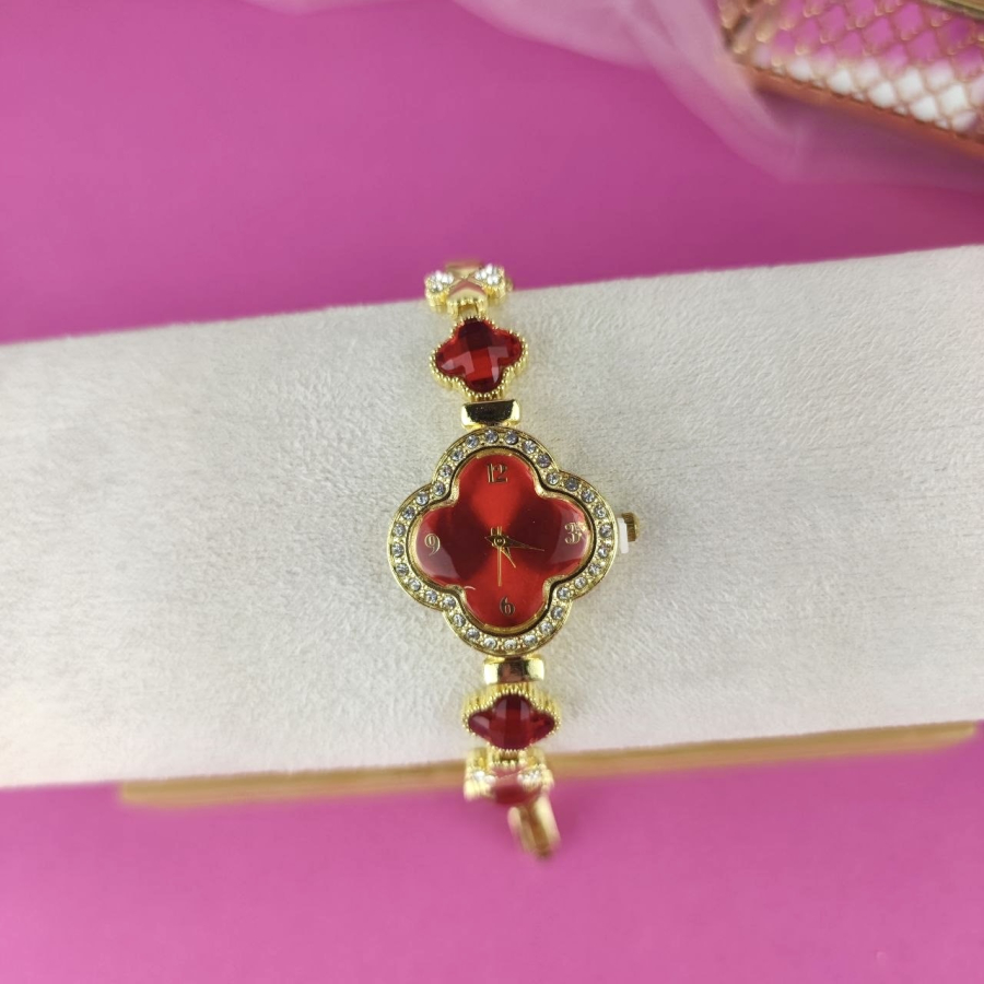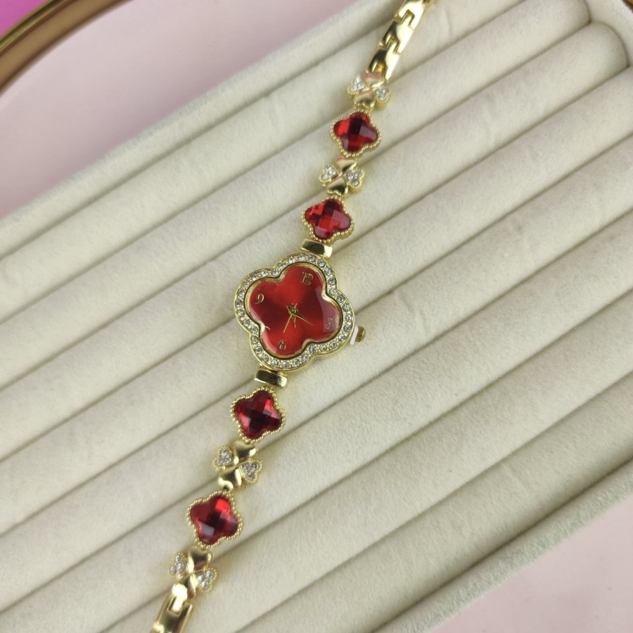 Zegarek Ariana ozdobny czerwone kryształki koniczyna