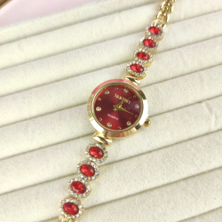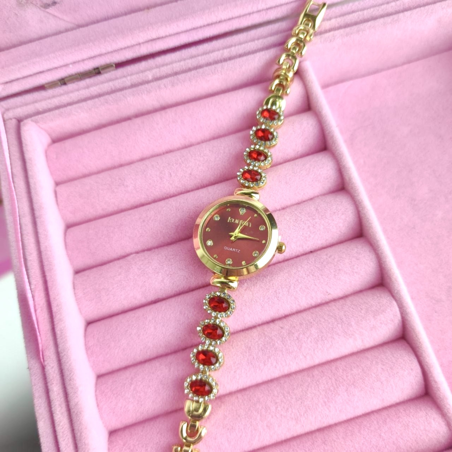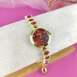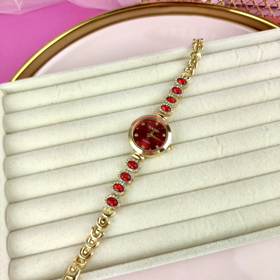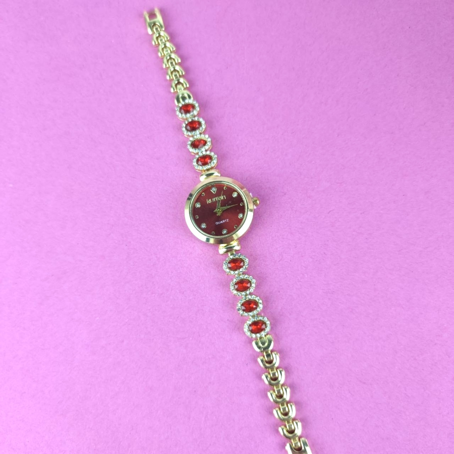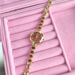 Zegarek Charlotte ozdobny czerwone kryształki